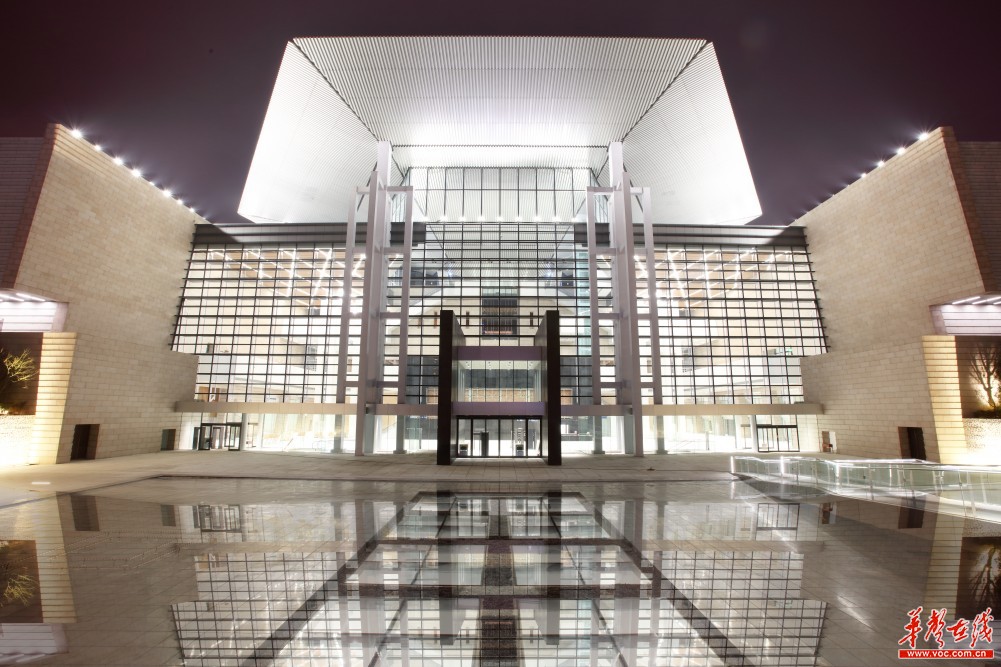 新馆设计上最为称道的是,采用了矶崎新对于“湖湘文化”中“水”的独特理念,建筑整体如同“水汽”一般,又好似一条纽带,头顶蓝天白云连接着时代和未来。独具特色的大屋顶,如一汪凝固的洞庭水悬浮在建筑的上空、