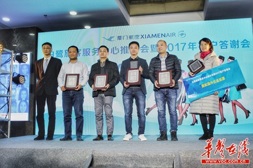华声在线12月22日讯(记者 李向 通讯员 宋升伟)12月21日下午,厦门航空湖南分公司在长沙白鹭旅客服务中心开展“白鹭旅客服务中心推介会暨2017高端客户答谢会”。厦航湖南分公司总经理姜玉林、厦航高端客户代表等各界人士出席了此次活动。活动现场,空乘组献上了精彩的表演“蓝天白鹭”,韵味十足的茶艺表演,精美的头等舱餐食展示让高端会员们大开眼界,展现出了独具特色的厦航魅力。