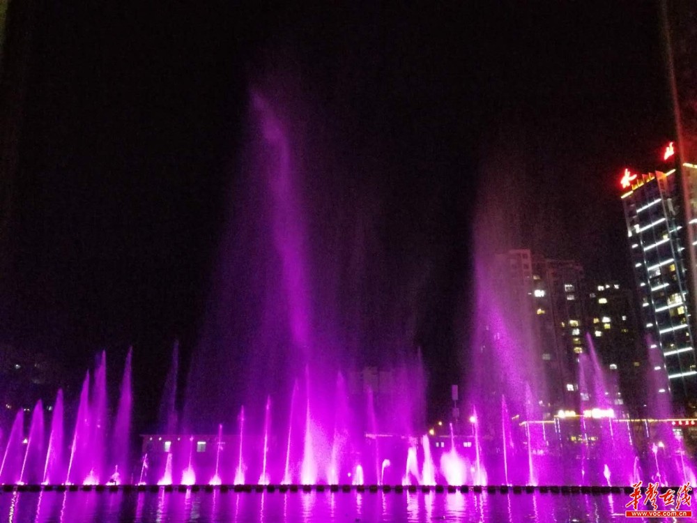 采访团观看水上灯光秀