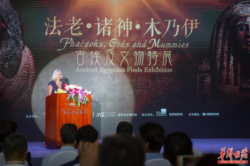 华声在线9月28日讯(记者 刘玉锋 通讯员 李叶 摄影 傅聪)巍然屹立的金字塔、宏伟沧桑的神庙石柱,独特复杂的象形文字……古埃及作为四大文明古国之一,拥有悠久的历史与灿烂的文化。为让观众在家门口就可以了解这个神秘而伟大的国度,9月28日上午,湖南省博物馆联合意大利都灵埃及博物馆共同打造的“法老·诸神·木乃伊——古埃及文物特展”(以下简称“古埃及展”)在省博物馆艺术大厅开幕。本次“古埃及展”于2018年9月28日至12月5日在湖南省博物馆一楼特展一厅向公众展出。