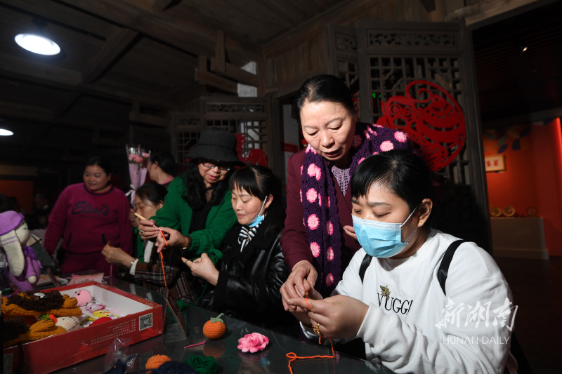 3月8日,长沙非物质文化遗产馆,女同胞们在体验非遗项目——欧氏手工钩编。当天,长沙非物质文化遗产保护中心举行汇聚“她”力量——乐玩非遗“三八”妇女节专场传习活动。邀请数位女性非遗传承人为女同胞们带来湘绣、剪纸、棕叶编等6项非遗体验项目,让她们了解传统文化,感受非遗技艺。 湖南日报全媒体记者田超 摄