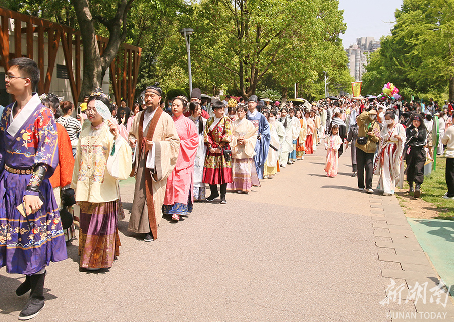 4月8日,2023年湖南汉服花朝节在长沙月湖公园举办。华丽的花神祈福、花朝集市、汉服巡游及游园会等活动,吸引市民游客驻足观赏,展现了中华传统服饰之美。 王子婕 摄