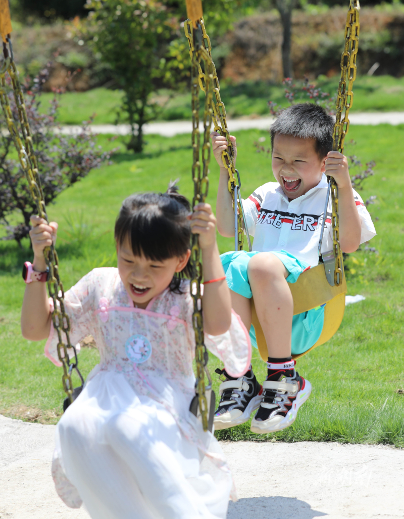 5月3日,道县欢乐世界主题公园,小朋友在荡秋千。“五一”假期,该县市民纷纷前往公园或近郊游玩,以不同方式放松心情、欢度假日。何红福 周凤连 摄影报道