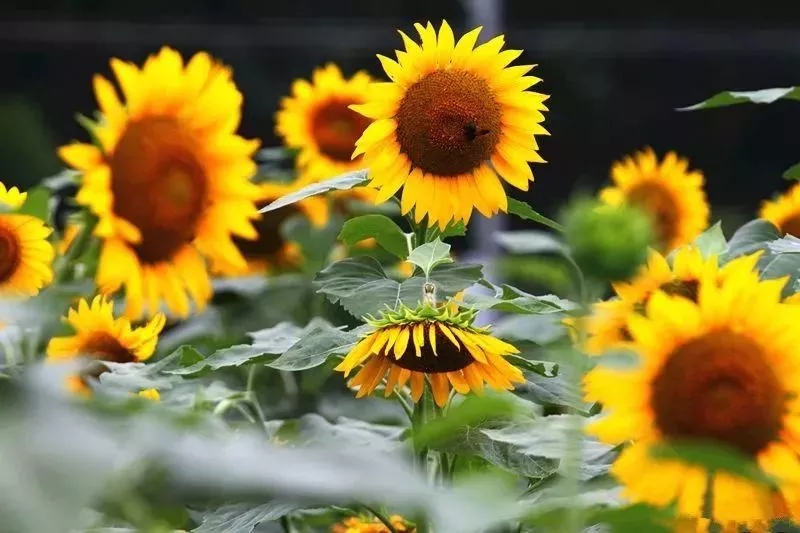 黑麋峰山的脚下藏着大片大片的金黄向日葵。6月底至7月,正是葵花的最佳观赏期。