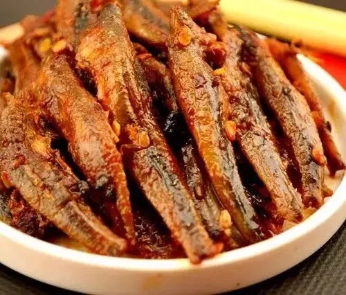 毛毛鱼是靖港的传统小吃,特点是辣不上火,耐嚼不生硬。毛毛鱼的肉成金黄色,色香味美。