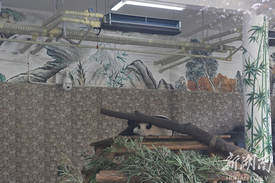 7月14日,长沙生态动物园,大熊猫坐拥独栋中央空调房,在木床上酣然入睡。