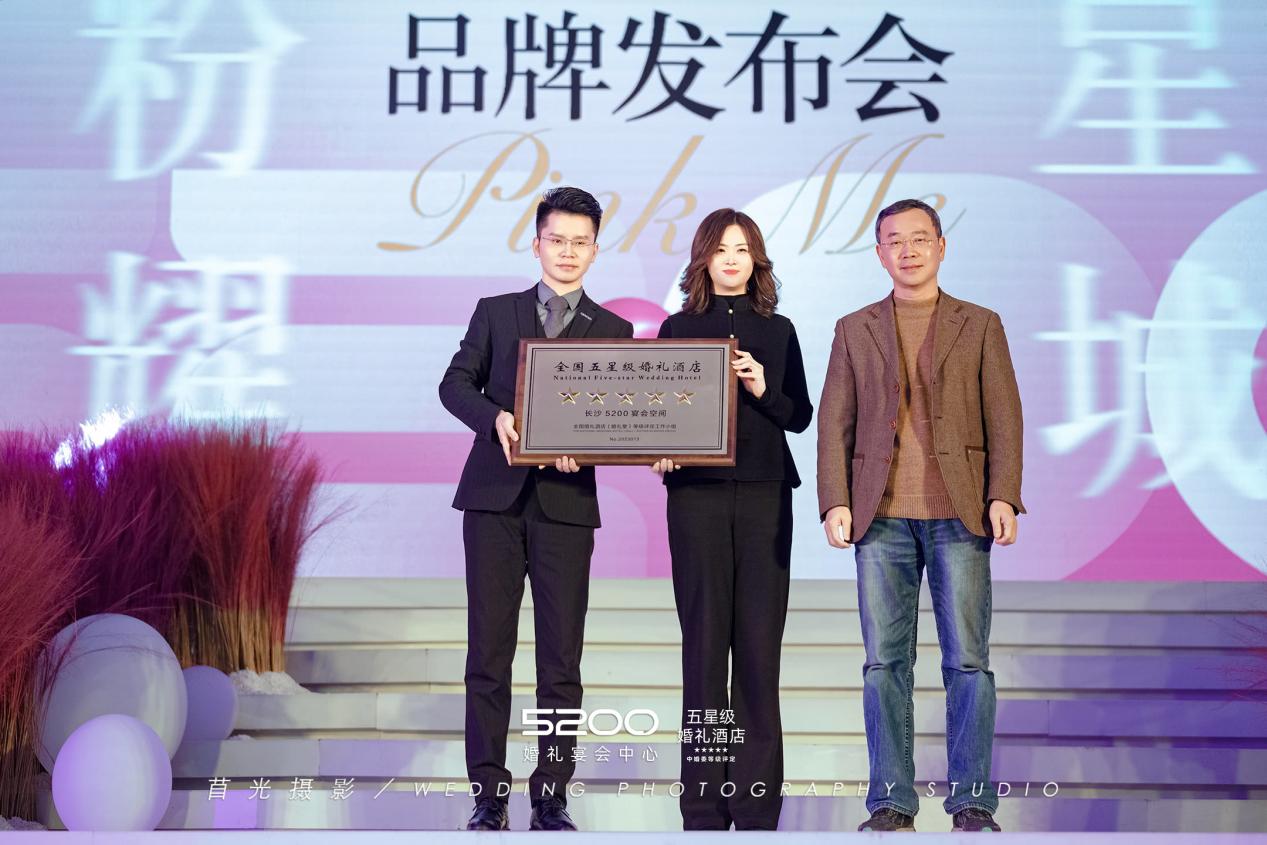 全国婚礼酒店星评组专家顾问、湖南省婚嫁行业协会会长谭伟奇在致辞中表示,5200宴会空间作为本土知名婚庆品牌,以华美的感官体验和精致的场景呈现,在不断提高服务标准的同时,最大程度满足客户的潜在需求。5200在短短几年间实现自我创新升级,获评“全国五星级婚礼酒店”,是婚庆行业的荣誉。
