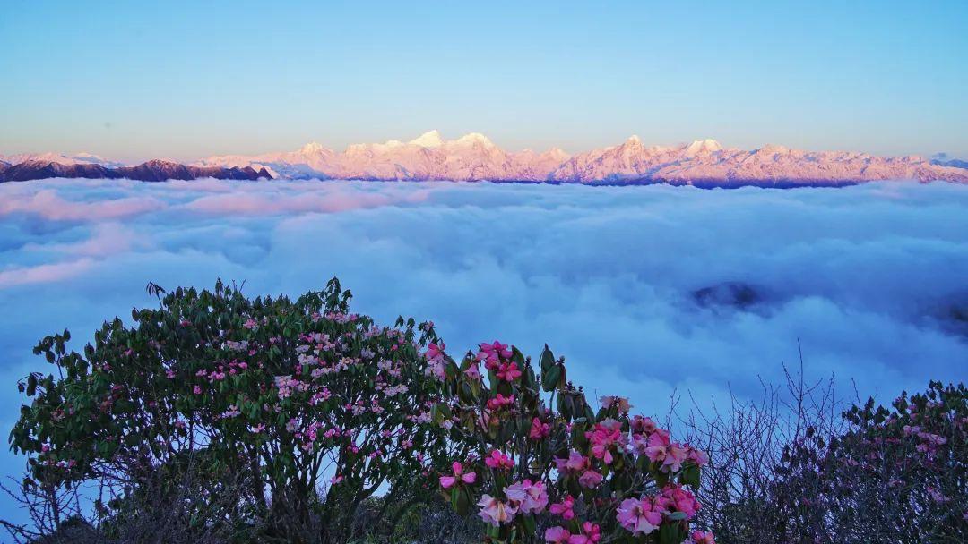 接下来的春天,继续向高而行,天全喇叭河(焦山)、牛背山、王岗坪的高山杜鹃成为主角。焦山的高山杜鹃种类繁多,形态各异,有的花朵硕大饱满,宛如精致的绣球;有的花瓣细长柔美,随风摇曳生姿。它们或簇拥成团,或零星点缀在绿树丛中,花朵在阳光下熠熠生辉。牛背山、王岗坪的高山杜鹃在星空下、雪山旁绽放,与云海、日出交相辉映,形成震撼人心的美景。