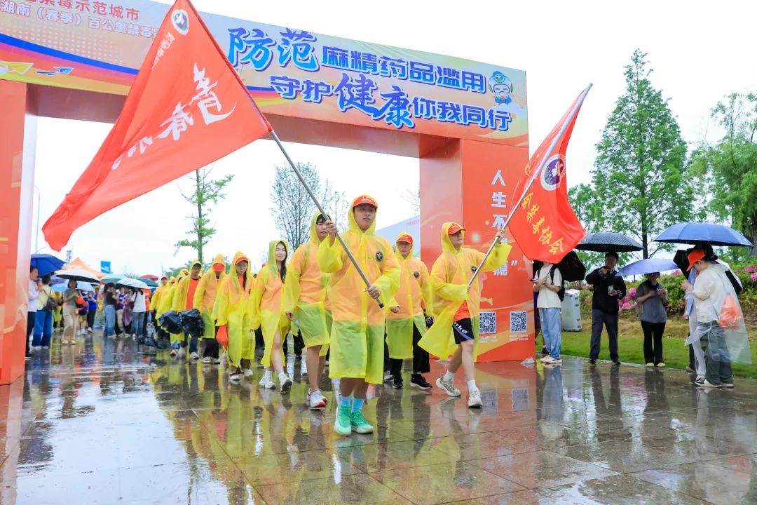 百人集结,行走禁毒征程。从2025湖南(春季)百公里的报名者里招募的100名毅行者,身着统一桔红色禁毒文化衫,禁毒旗帜高举,前行脚步铿锵,他们成为了百公里毅行活动中的一道“特别”风景线。