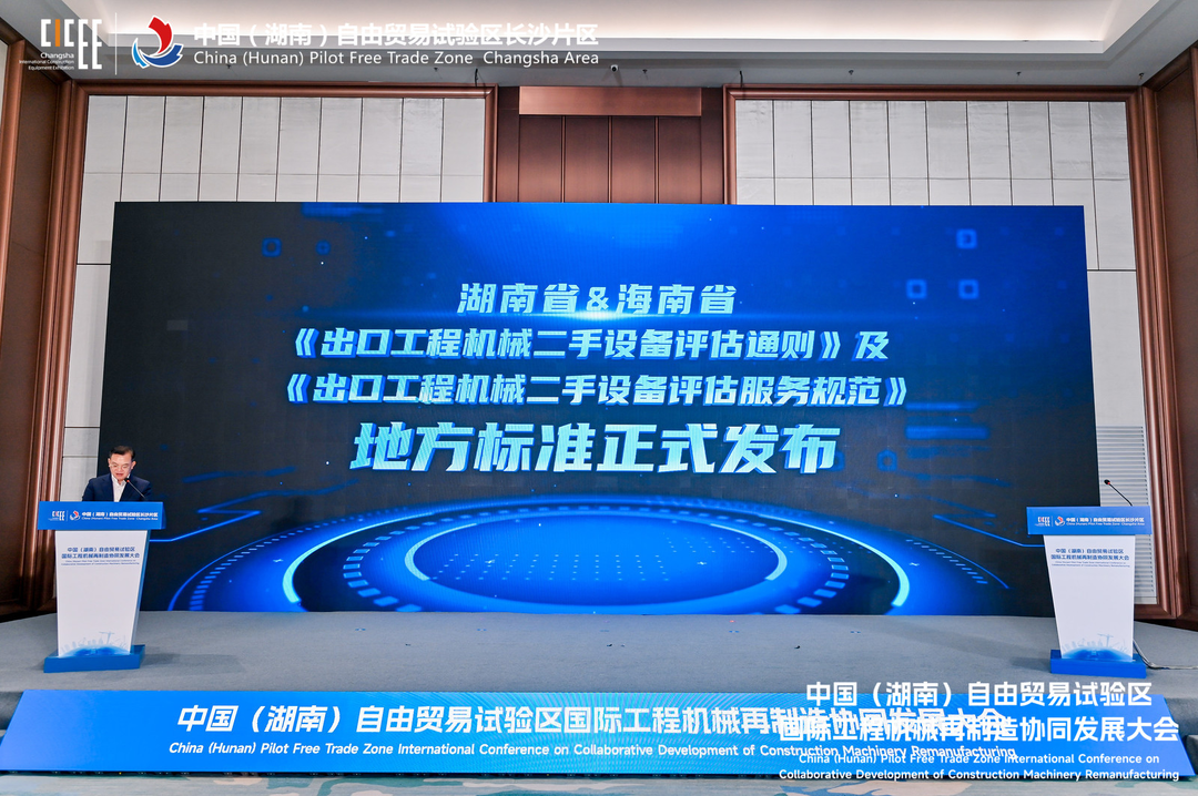 两省联合发布的两项标准,标志着湘琼两省在工程机械再制造标准化建设上实现了“从1到N”的突破。它们不仅为二手设备出口建立了“湘琼标准”,更将成为对接国际标准的“桥梁”,助力中国工程机械在全球市场行稳致远。