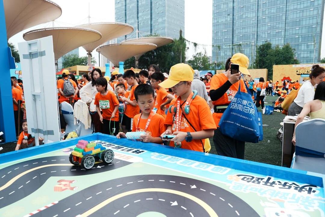 作为赛事协办单位,长沙新东方发挥自身优势,构建暖心服务链路:起点滨江新城市民中心广场设置拍照打卡区,捕捉家庭运动风采,记录精彩瞬间;终点风光足球场设计编程赛车体验、套圈游戏等项目,为健走之旅增添趣味与活力。