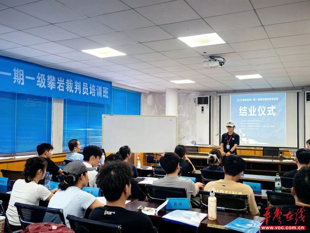 6月29日,在经历了3天紧张且充实的学习后,2025年湖南省攀岩一级裁判员培训班在湖南省体操中心圆满落下帷幕。此次培训班由湖南省体操运动管理中心主办,湖南省登山运动协会承办,吸引了来自全省各地学员参与。他们怀着对攀岩事业的热爱和提升专业素养的渴望齐聚于此,经过高强度的培训与严格考核,成功结业,为湖南省攀岩运动的发展注入了强劲动力。