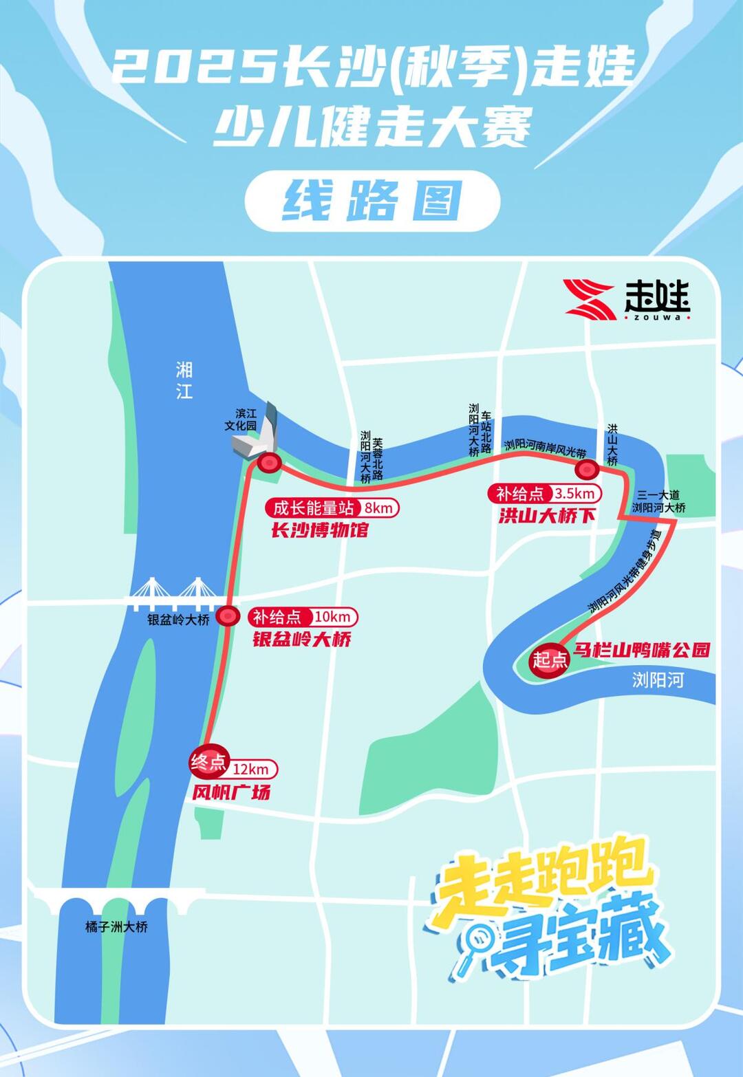 2025 长沙秋季走娃少儿健走大赛进入最后倒计时!作为国内规模领先的亲子户外赛事,数千组家庭将于明日集结,从马栏山鸭嘴公园出发,沿 12 公里路线畅游浏阳河风光带。茄皇为本次赛事特别打造“美味补给 + 趣味互动”双重惊喜——这份超全路线解析、互动福利与打卡指南,助你与孩子轻松享受亲子行走盛宴!