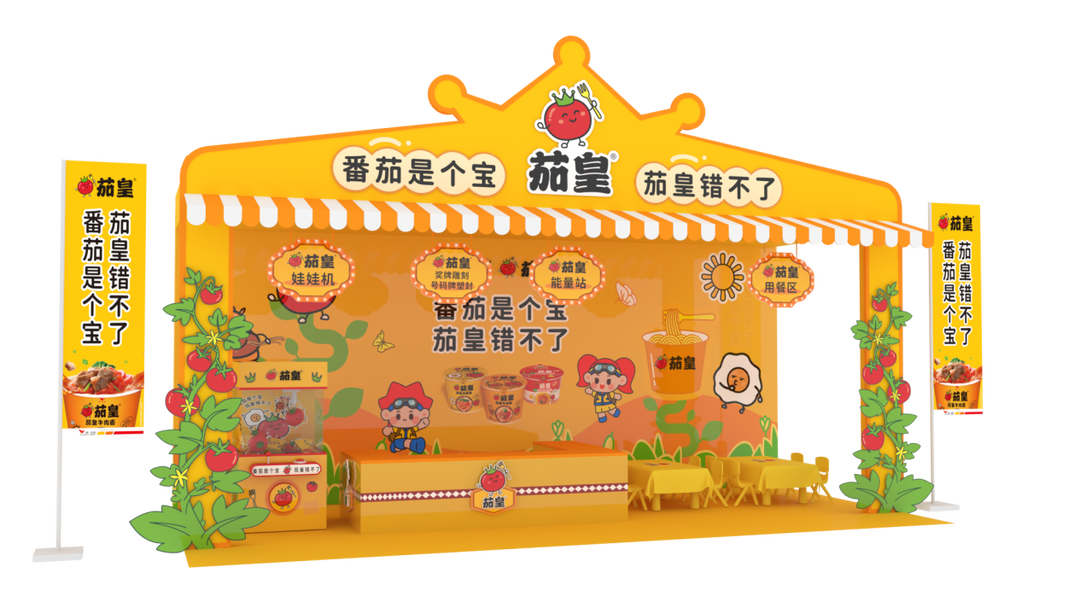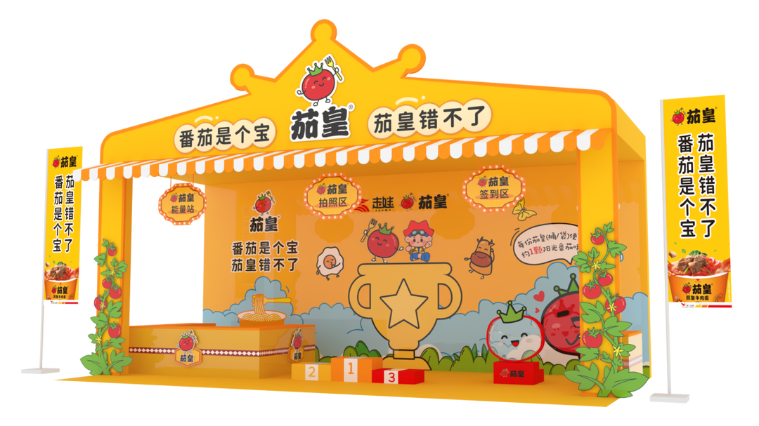 背景板印有 “番茄是个宝 茄皇错不了” 品牌标语,带话题 #阳光茄皇一起走娃 分享照片 / 视频至微博、抖音或小红书,可领取阳光气球 1 个(数量有限,先到先得)。