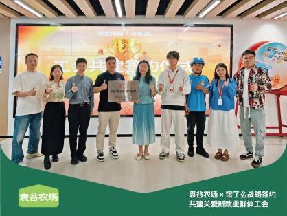 近日,袁谷农场与长沙饿了么蓝骑士联合工会正式达成“关爱新就业群体”工会共建合作协议,双方将以资源共享、优势互补为核心,为网约配送员、快递员、网约车司机等新就业群体带来全方位关爱服务。