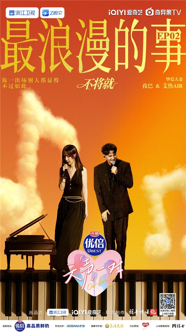 他们合作的六个舞台风格多元,因独特的改编、默契的搭档与真情实感的自然流露,碰撞出奇妙的音乐火花,屡屡登上抖音热门榜单。无论是深情执着的《不将就》、自由随性的《找自己》、温柔缱绻的《Beautiful Love》,或是灵动轻盈的《合拍》,点燃希望的《光》,多巴胺爆棚的《形容词》,都是深受网友喜爱的单曲循环热歌,其中《光》舞台数据爆发式飙升,上线一周全网播放量超千万,点赞近百万,抖音平台掀起跟唱热潮,音源互动分享量高涨,是近期浙江卫视官方视频号中数据排名第一的最新音综舞台,登华语乐坛权威榜单腾讯音乐由你LIVE榜,成为新晋流行热单。艾热和孜巴是相互滋养、共同描绘温暖色彩的伴侣,一个个的舞台,如同一篇篇音乐情书,记录着他们的爱与成长,也治愈着被他们的故事与音乐打动的观众。