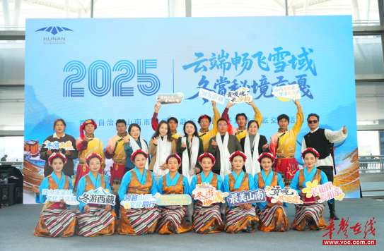 华声在线11月28日讯(通讯员 宾旗发)11月27日,长沙机场联合西藏航空、西藏贡嘎县文化和旅游局、湖南华天国旅联合举办“云端畅飞雪域,冬赏秘境贡嘎”航文旅专题推广活动,通过航线推介、景点展示、歌舞表演等形式,聚焦贡嘎县自然人文风光,全方位呈现冬游西藏魅力,为湘藏文旅交流搭起“空中金桥”。
