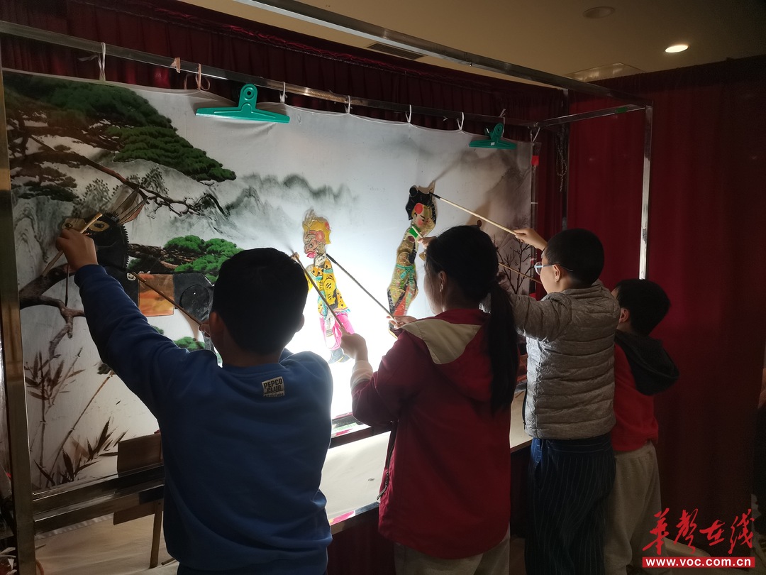 华声在线11月29日讯(通讯员 蒋林珊 陈诗雨)今天,"湘娃会非遗 薪火永相传"少年儿童非遗美育秋季公益培训结业仪式在海彣非遗馆举行。皮影戏代表性传承人何怀玉为学员和家长们带来精彩绝伦的皮影戏表演,并指导小学员们亲身体验皮影操纵,为为期三个月的美育课程画上圆满句号。