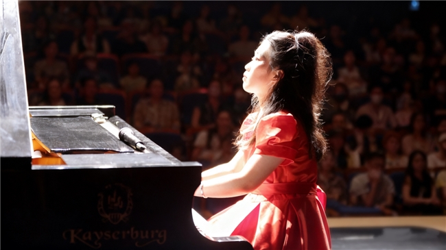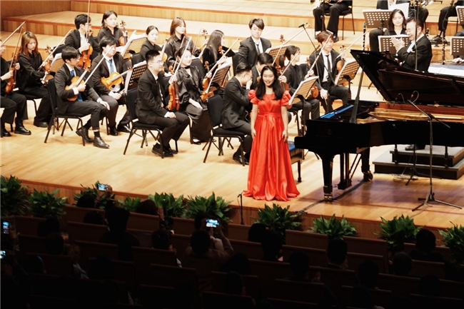 《梁祝》的钢琴改编版,将中国古典旋律与西方和声巧妙融合。李昕昱的演奏既有宏伟壮阔的气势,如《黄河颂》的八度奔腾,又有细腻入微的抒情,如《彩云追月》的五声调式韵味,展现了其作为“钢琴才女”的全面素养。李昕昱演奏的《山丹丹开花红艳艳》既展现了作品的音乐性,又展示了其对作品的真挚情感。谈起在音乐会上演奏中国作品,李昕昱说:“作为中国人,在音乐会上演奏中国作品深感荣幸和自豪!我们中国有着五千多年的悠久历史,弘扬中国传统文化和艺术是每一个艺术从业者的责任与使命!”