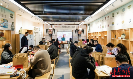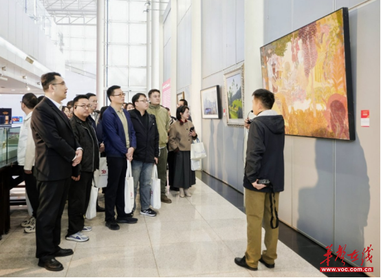 随后,大家开启了湖湘文化与新疆文化体验交流两大活动,沿着艺术长廊、美术展厅、“湖湘记忆”湖南非遗展厅、“湘遇非遗”体验展示基地的路线有序参观。湖湘书画作品和众多非遗代表性项目展示了湖湘文化的深厚底蕴,大家在讲解员的细致解读下,进一步探寻湖湘文化的精神内核。