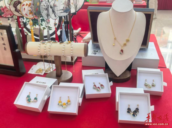 ‘省赛’金奖商品‘花开十八洞系列苗绣’是传统苗绣工艺向时尚生活的转化,利用苗族刺绣的传统针法精密电镀工艺结合制作的首饰系列。传统工艺与新材料的结合、向时尚生活的转变是对传统工艺最好的传承保护,传统工艺的产品创新不是传统手艺提升,是产品使用方式的创新。‘特色赛’银奖长沙老字号的紫金湘绣的敦煌五色・湘绣葫芦珠宝系列产品,利用手工真丝刺绣、项链配朱红珐琅隔珠,链条、耳饰耳针为S925银,葫芦底托为18k金,让湘绣平绣的松针、珠针、掺针等针法,织绣,网绣的刺绣技法,融入饰品的方寸之间更显精致。