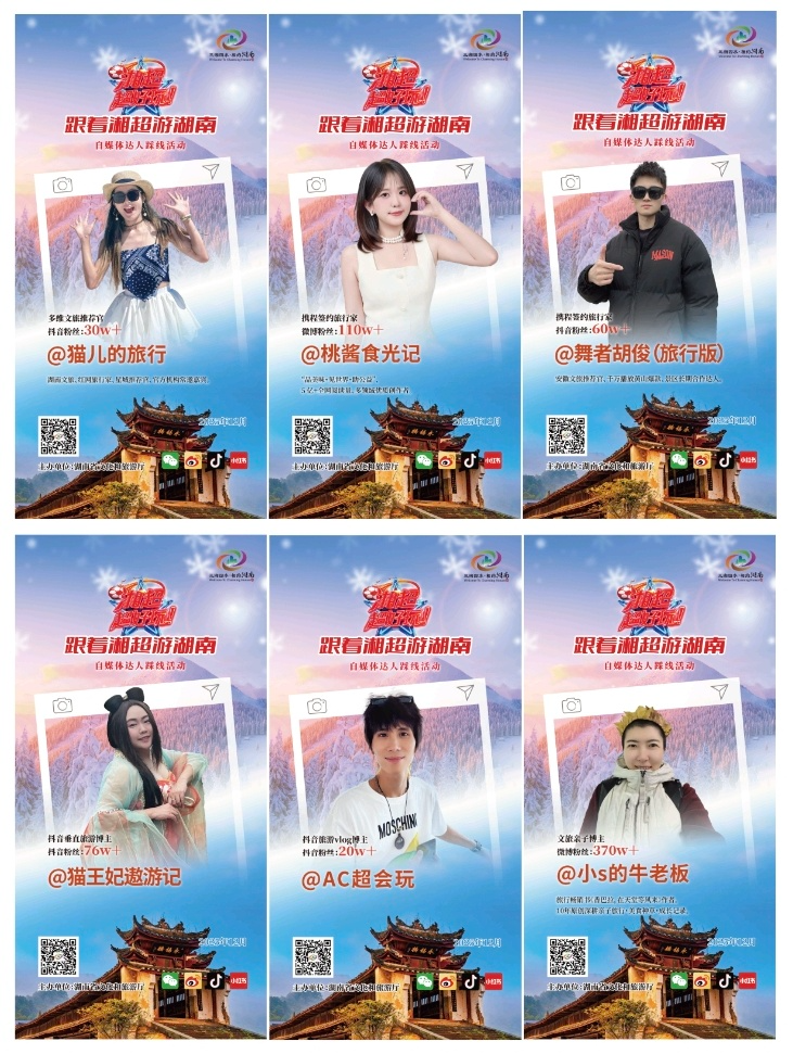 长沙站行程结束后,达人们兵分四路,前往郴州、怀化、益阳、张家界,深度体验省文旅厅最新发布的4条冬季秘境路线“温汤雾凇·湘南秘境之旅”“瑶寨暖冬·南国雪峰之旅”“黑茶围炉·古道寻幽之旅”“仙境雪韵·武陵探秘之旅”,解锁冬季潇湘之美。