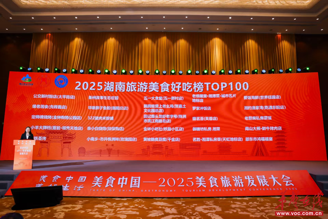 华声在线12月22日讯(通讯员 谢凯)12月20日-22日,“美食中国——2025湖南美食旅游推广季”活动在湖南常德启幕。活动期间,湖南省文化和旅游厅党组成员、副厅长龚铁军发布“2025湖南热门美食旅游目的地”,湖南省旅游协会副会长兼秘书长陈伏姣宣读“2025湖南旅游美食好吃榜TOP100”。两大榜单的发布为游客畅游湖南、品味湘味提供了权威指引。