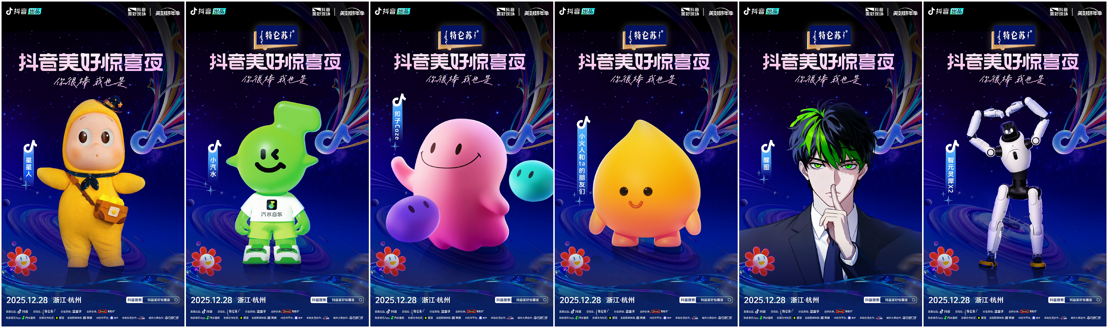 12月28日晚19:00,2025抖音美好惊喜夜将与20余位惊喜嘉宾、10余位抖音优质创作者及热门萌动IP,共同打造一场跨越屏幕的狂欢,让每一个平凡的瞬间都被掌声与喝彩包围!