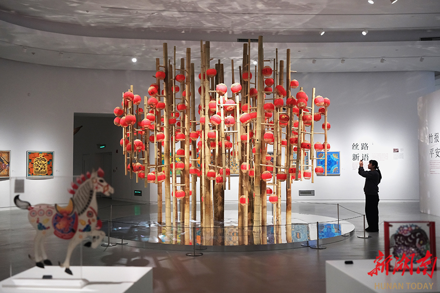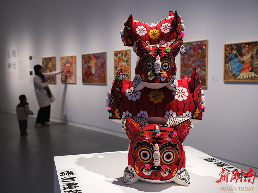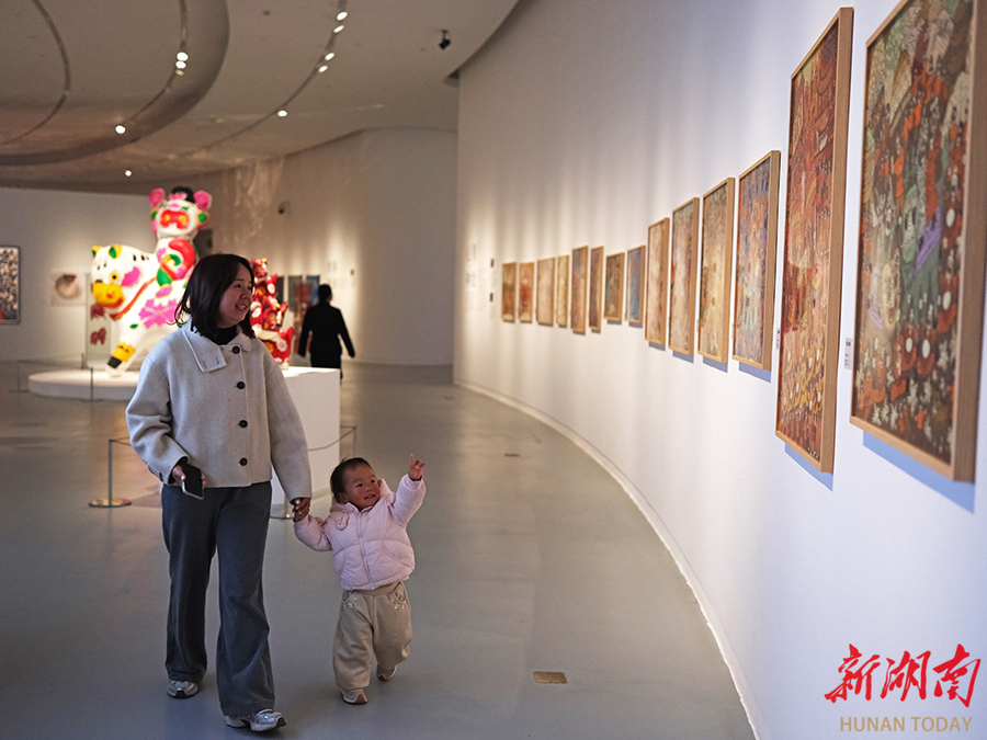 1月25日,在长沙梅溪湖艺术博物馆“春风得艺——马年迎新非遗艺术展”上,市民通过欣赏非遗艺术作品,感受传统文化魅力,喜迎新春佳节。 林道辉 摄(湖南图片库)