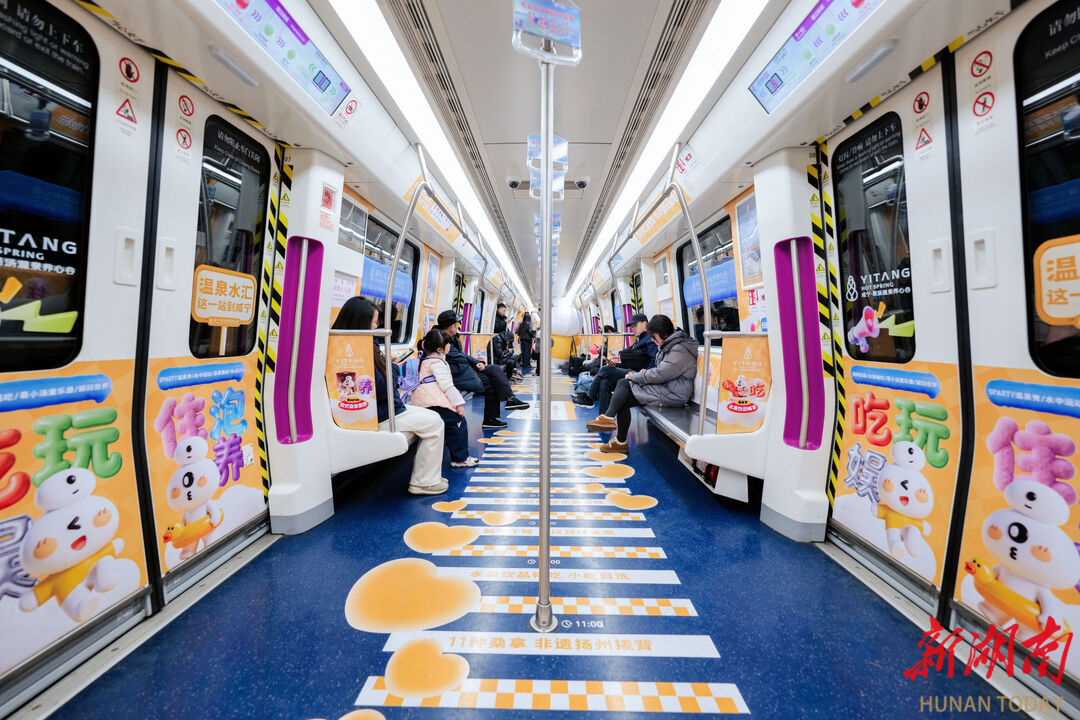 华声在线1月28日讯(通讯员 袁梦)农历马年春节临近,长假文旅消费市场也逐渐升温。1月28日,一列以“一日温泉养心之旅”为主题的全景包装专列在长沙地铁4号线投入运营。车厢内外以温泉景观与宋式美学元素进行视觉呈现,融合温泉体验、演艺互动与数字技术,尝试打造新型地铁文旅场景。此次推广覆盖市内12个主要换乘站点的数字屏幕。