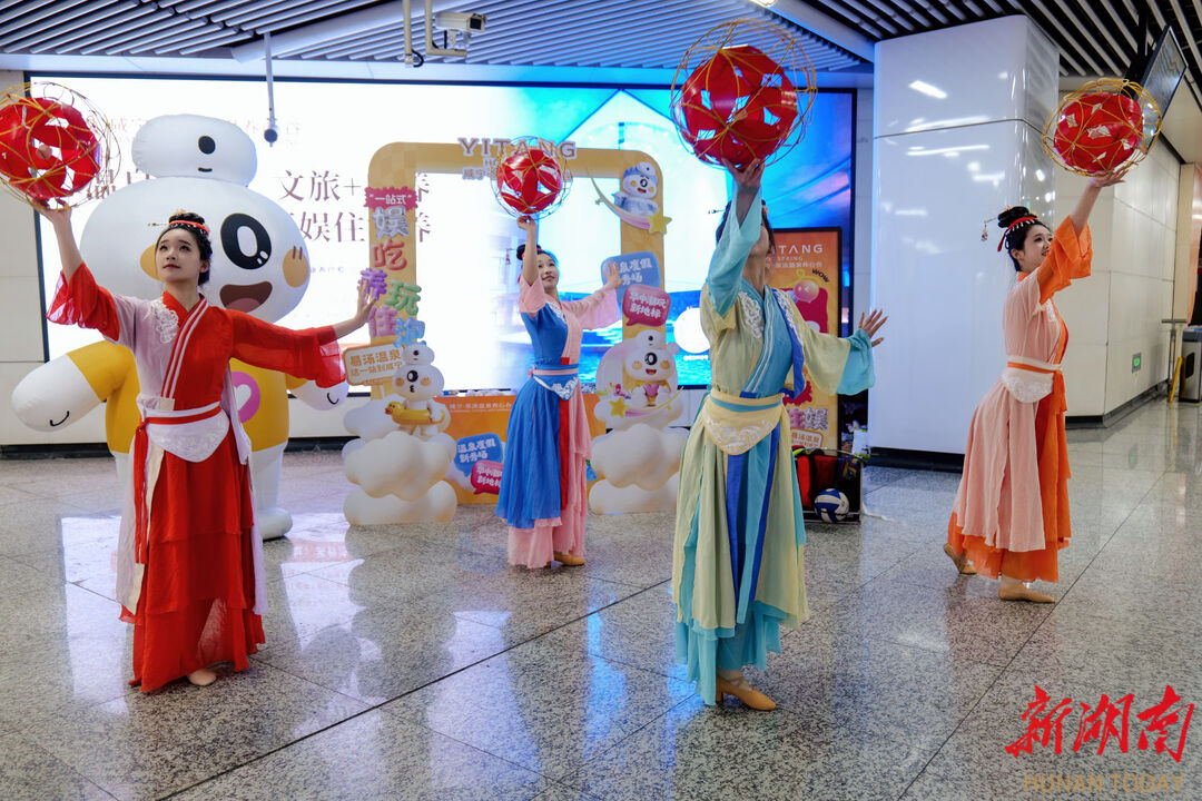 在客流量密集的五一广场站,项目方同步举办了线下快闪活动。活动现场,以宋式美学为灵感的舞蹈表演,营造出与传统温泉文化相契合的静谧氛围。同时,魔术互动与卡通人偶吸引了众多年轻乘客与亲子家庭驻足参与,显示其面向广泛客群的定位。