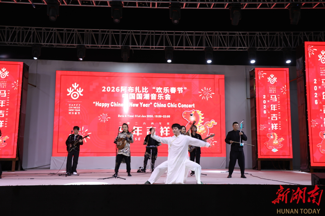 华声在线2月2日讯(记者 刘瀚潞)悠扬的琵琶遇上激越的电音,古典舞姿融入现代节拍,近日2026“欢乐春节”中国国潮音乐会在阿联酋阿布扎比扎耶德节连演两场,为当地民众与旅阿华侨带来一场融汇东方美学与当代潮流的新春艺术盛宴。