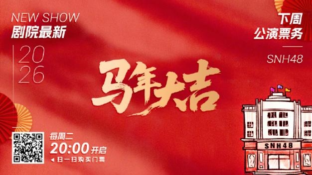剧场方面,SNH48 星梦剧院将于2月7日至8日将上演“春晚系列特别公演”,这场被誉为“封箱之战”的演出将以精心编排的节目为过去一年的努力画上圆满句号。