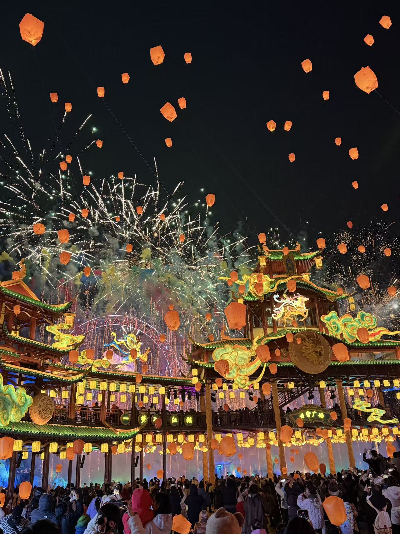 景区春节期间采用分区域全天演绎模式,三大演艺区同步发力,搭配丰富游乐项目,适配不同年龄段孩童,家长可按需规划行程。