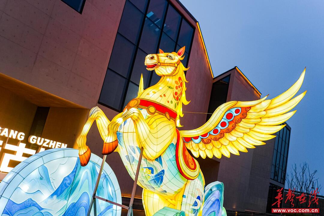 水上花船熠熠生辉,古街老巷亦灯火辉煌。徜徉古镇,鳌鱼灯巡游浪漫上演,绚丽的巨型鳌鱼引领队伍蜿蜒如龙,鱼灯穿梭街巷时而左右摇摆,时而上下游弋,重现“一夜鱼龙舞”的盛景。剪纸、湘绣、皮影戏等湖湘年俗化身彩灯艺术,“马上有福”“马到功成”等马年特色灯组年味满满。