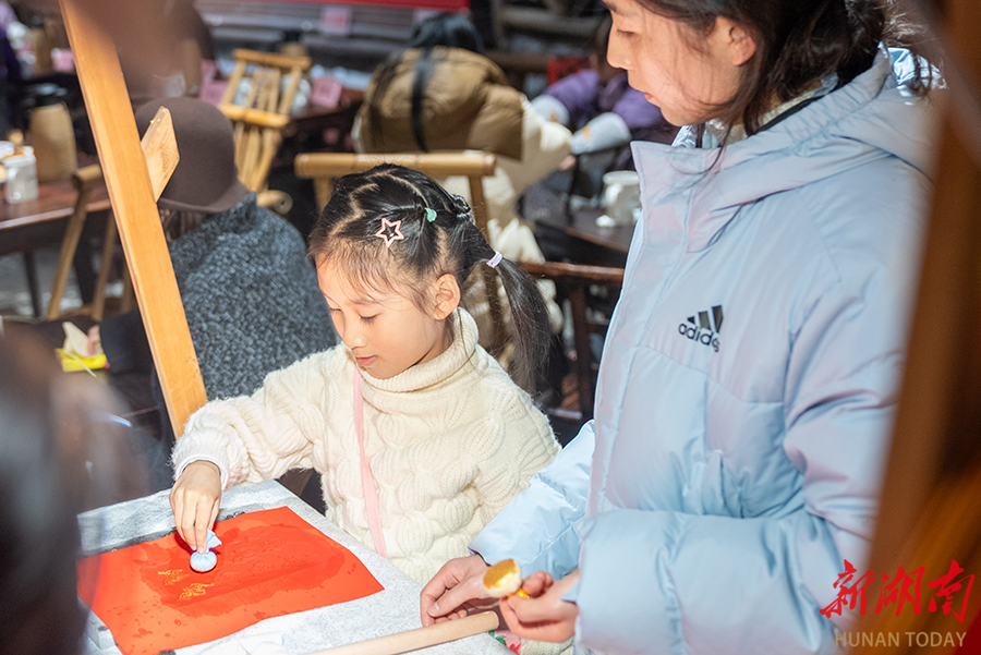 2月9日,长沙市东茅街茶馆,游客在体验拓印“福”字。当天,“欢欢喜喜过大年 —— 芙蓉区演艺新空间新春文旅展演” 在长沙市东茅街茶馆开演。展演汇聚民乐演奏、经典花鼓戏、京剧选段、越剧表演与潮口秀等多元形式,并设置非遗体验区,书法家为市民书写春联送福,营造出浓厚的节日文化氛围。 湖南日报全媒体记者 童臻熙 摄