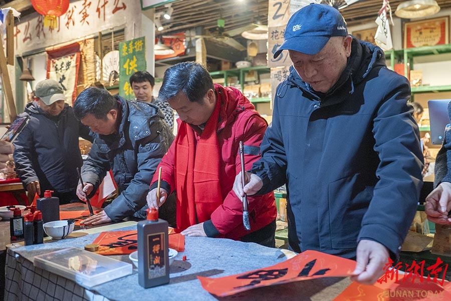 2月9日,书法家在为市民、游客写“福”字。当天,“欢欢喜喜过大年 —— 芙蓉区演艺新空间新春文旅展演” 在长沙市东茅街茶馆开演。展演汇聚民乐演奏、经典花鼓戏、京剧选段、越剧表演与潮口秀等多元形式,并设置非遗体验区,书法家为市民书写春联送福,营造出浓厚的节日文化氛围。 湖南日报全媒体记者 童臻熙 摄