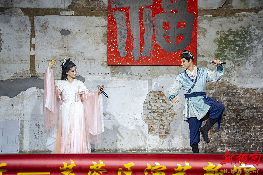 2月9日,长沙市东茅街茶馆,演员在表演节目《十八相送》。当天,“欢欢喜喜过大年 —— 芙蓉区演艺新空间新春文旅展演” 在长沙市东茅街茶馆开演。展演汇聚民乐演奏、经典花鼓戏、京剧选段、越剧表演与潮口秀等多元形式,并设置非遗体验区,书法家为市民书写春联送福,营造出浓厚的节日文化氛围。 湖南日报全媒体记者 童臻熙 摄