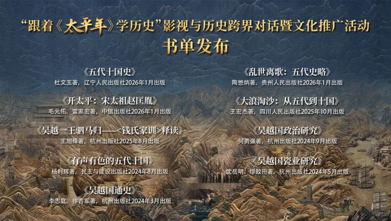 2月10日,“跟着《太平年》学历史”影视与历史跨界对话暨文化推广活动在中国考古博物馆举行。现场,国家广播电视总局电视剧司、中国历史研究院、华策影视集团联合发布“读史观剧·经典同行”主题书单,九本精选历史读物涵盖人物、政治、家训、美学与生活,旨在将《太平年》引发的全民观剧热,系统引向对中华文明史的深度探寻与持久阅读,引导观众学习历史,让中华优秀传统文化“热起来”。