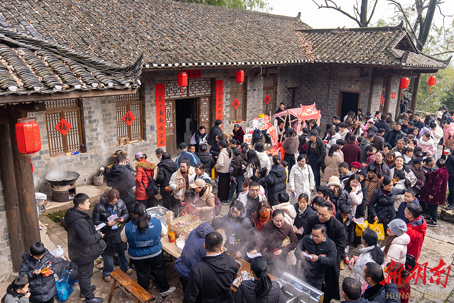 2月11日,湖南湘江新区莲花镇,游客在南科院子游玩。当天是南方小年,2026湖南湘江新区 “万马奔腾欢,春暖气象新” 年味嘉年华系列活动暨“来莲花,过非遗中国年”新春主题活动火热开启。市民游客在此体验非遗展演、民俗活动、乡土市集与长龙村宴,在丰富的活动中感受地道的中国年。湖南日报全媒体记者 傅聪 王晗 摄影报道