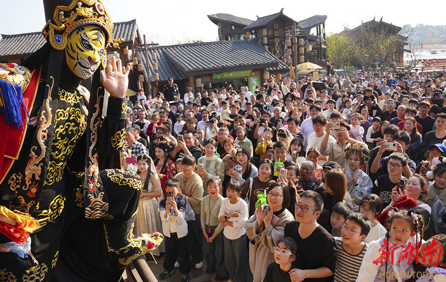 2月22日,衡阳市南岳区南岳里,演员与游客互动。春节假期,该区举办丰富多彩的民俗活动,为游客带来了充满传统韵味的新春体验。曹正平 文兰 摄影报道(湖南图片库)